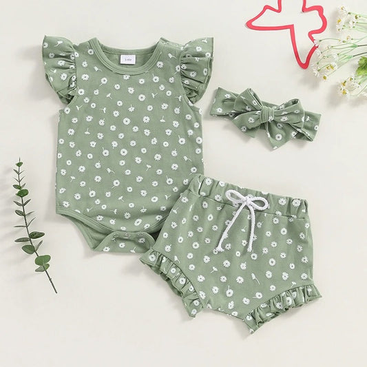 Boys And Girls Fashion Floral Flying Sleeves Romper Suit
