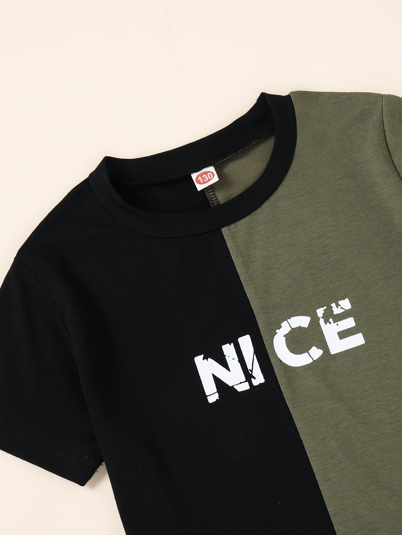 Boys' Color Matching Printed Short Sleeve Polyester Top And Trousers Sports Suit