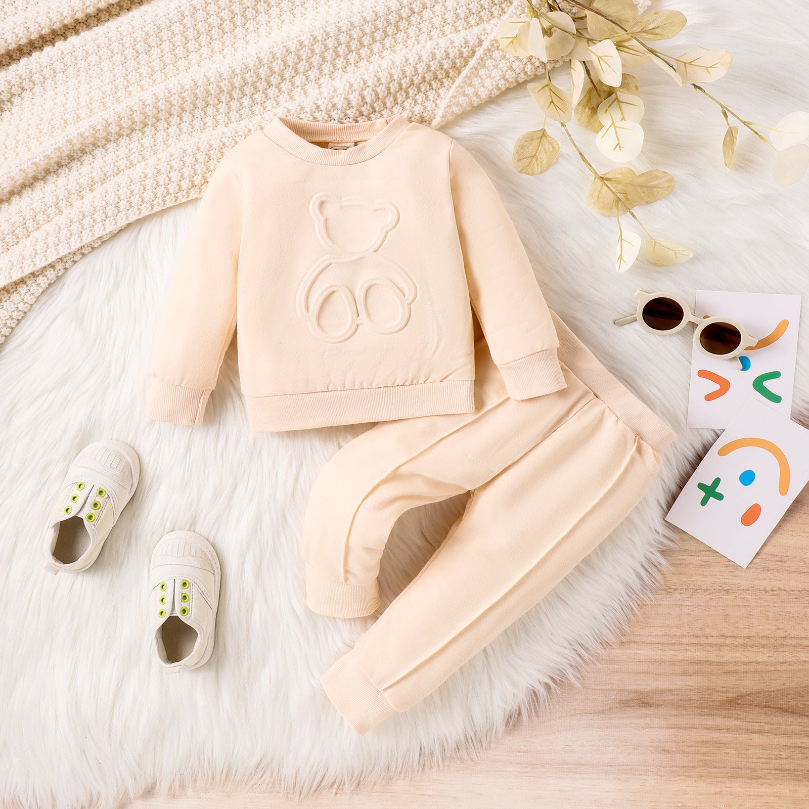 Printed Bear Pullover Sweater Pleated Trousers Sports Suit