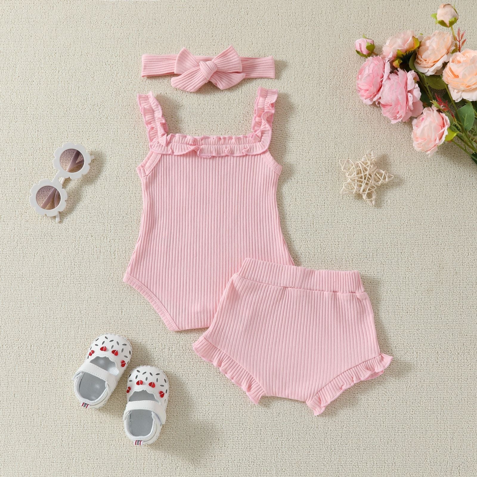 Suspender Top Solid Color Shorts Girls' Summer Two-piece Suit